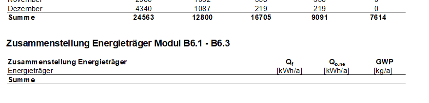 Nachdem ich das Projekt vollständig auf EH40 ausgelegt und abgeschlossen hatte, habe ich im Anschluss die LCA-Funktion aktiviert. Zu diesem Zeitpunkt wurde mir ein Gesamtwert von ca. 26 kg CO₂-Äquivalent/m²a angezeigt. Seit dem Update auf Version 25.0.11 erhalte ich jedoch bei den Modulen B6.1 und B6.3 jeweils den Wert 0, sowohl in meinem Projekt als auch im offiziellen LCA-Musterprojekt WG.