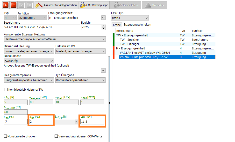 Welche Leistung nach angehängtem Datenblatt ist nun für die Wärmepumpe mit bivalentem System anzusetzen, um die erforderlichen Anforderungen zu erfüllen? Die Auslegungsleistung oder die Leistung der Wärmepumpe beim Bivalenzpunkt?