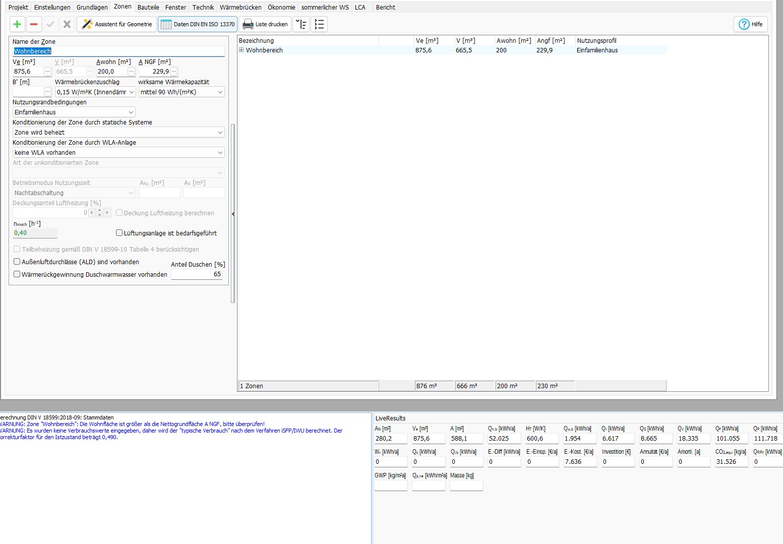 "HINWEIS: Zone "Wohnbereich": Die Nettogrundfläche Angf ist min. 20% größer als die Gebäudenutzfläche An, bitte ggf. überprüfen!"