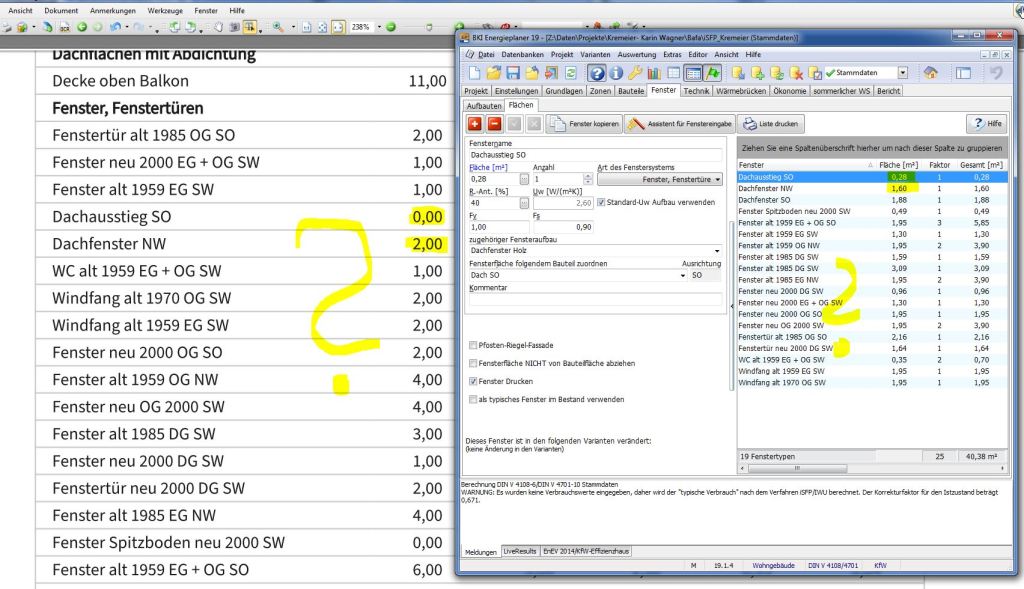 bei der Eingabe mehrerer Sanierungsfahrpläne ist mir aufgefallen, dass die Flächen der Fenster auf- bzw. abgerundet werden.