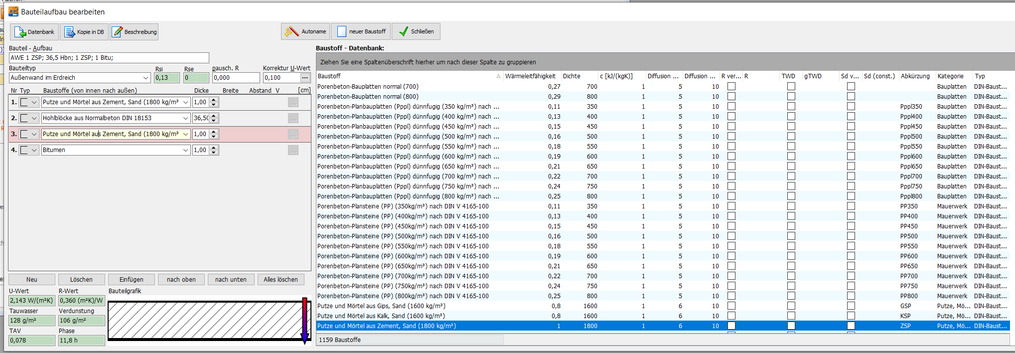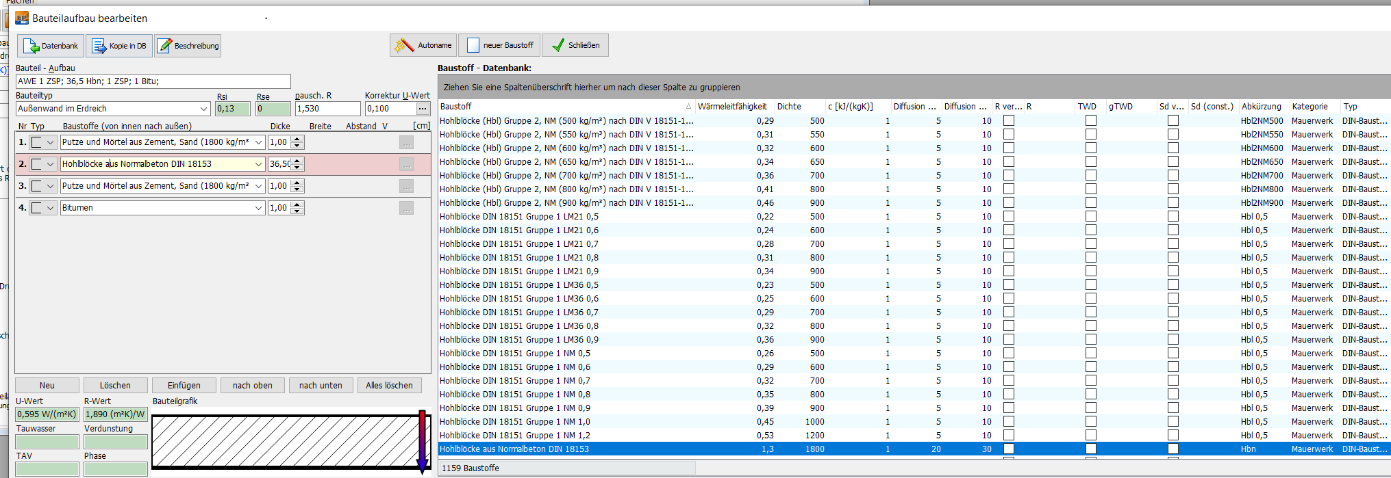 ich habe ein Problem mit der Eingabe eines Bauteilaufbaus in den Stammdaten und in einer Variante. Bei der Eingabe desselben Aufbaues erhalte ich unterschiedliche Ergebnisse für den U-Wert.