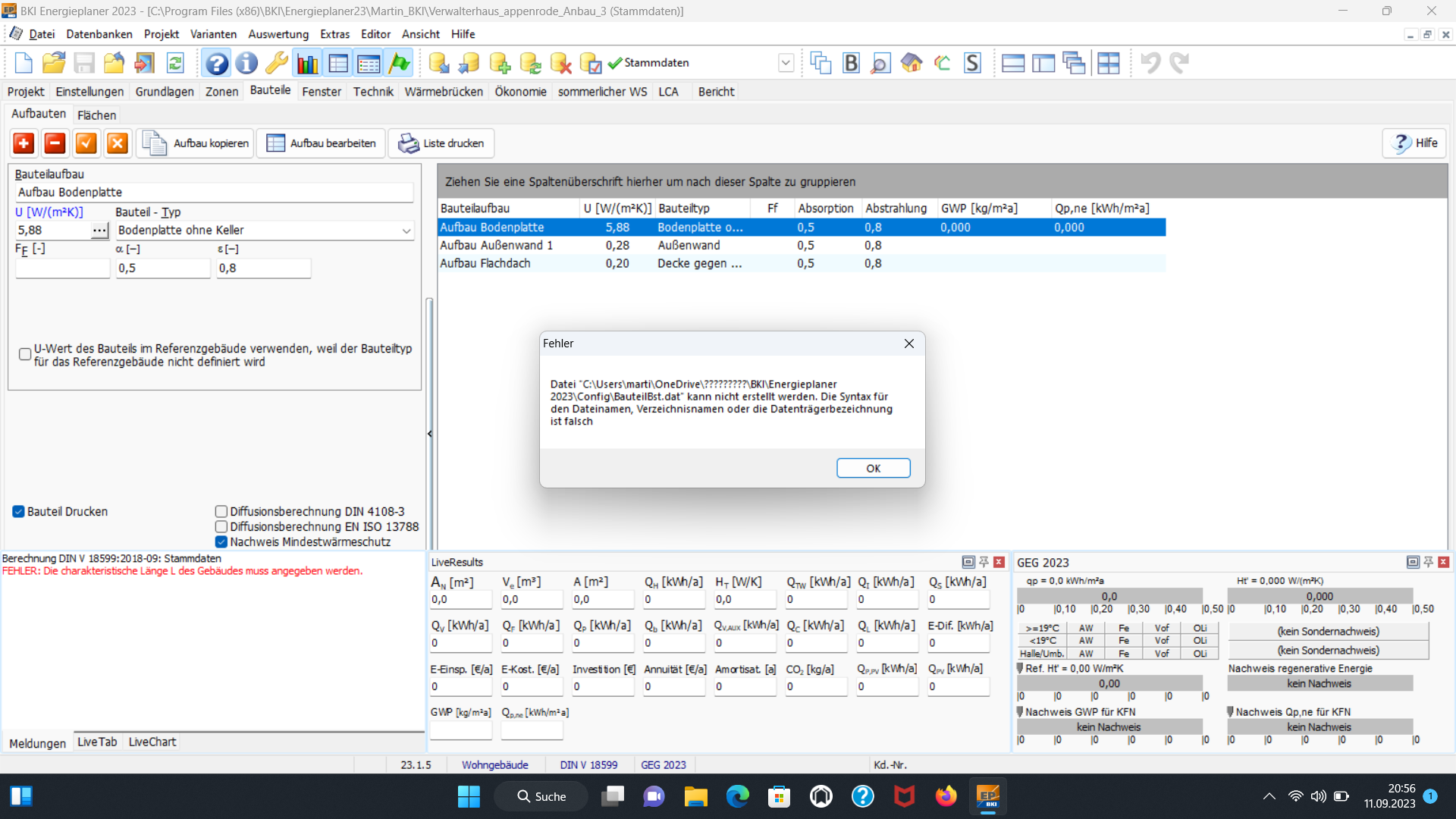 Nach der Installation des EP23 unter Windows 11 zeigt sich im Dialogfenster Meldungen folgender Fehler